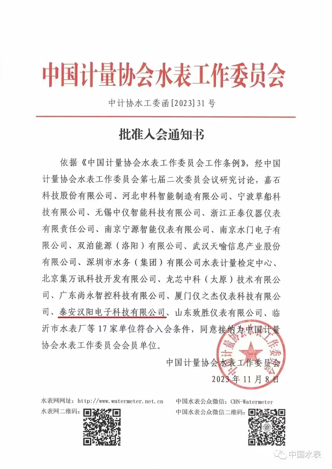 泰安漢陽(yáng)加入中國(guó)計(jì)量協(xié)會(huì)