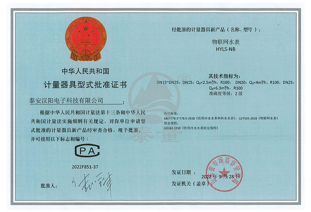 物聯(lián)網(wǎng)水表型評(píng)證書(shū)