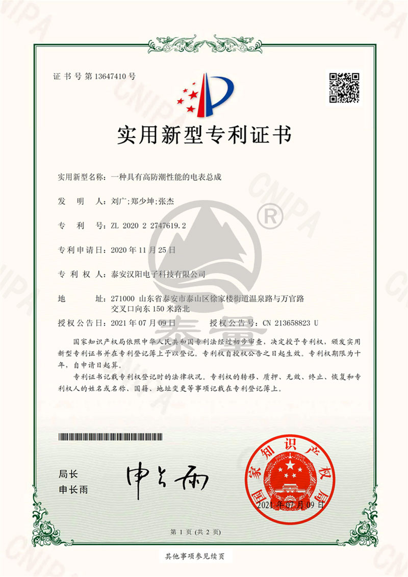 FZ20-521一種具有高防潮性能的電表總成-證書